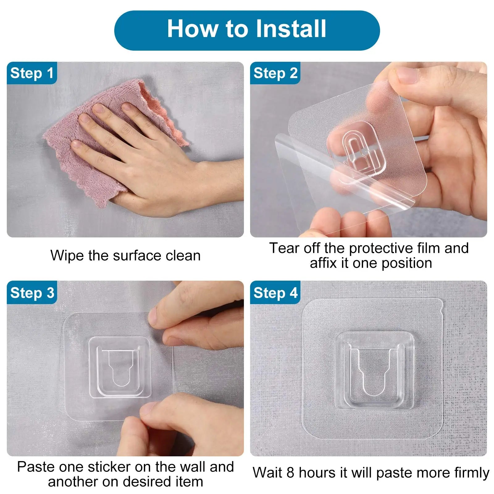 4.It is firm and stable; the adhesive sheet has a certain degree of flexibility, its area is larger than the hook seat itself, it is stronger and more reliable than any hook on the market, so there is no need to worry about it falling off.